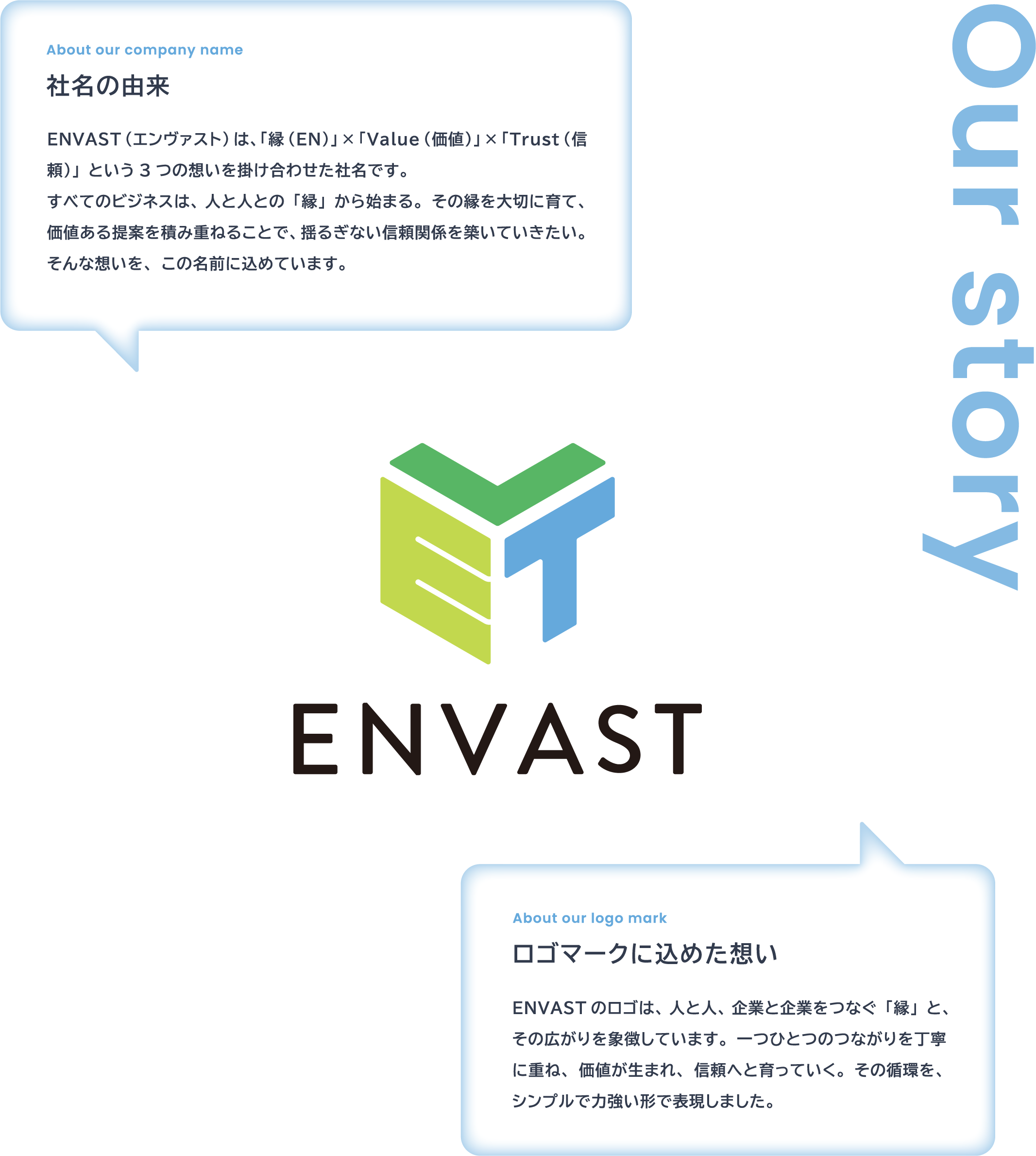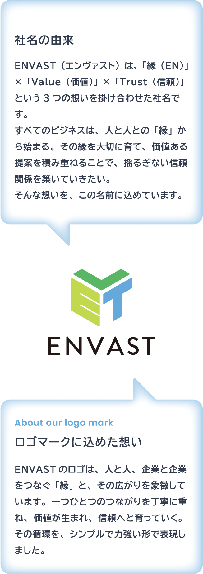 ENVASTは、「縁・価値・信頼」という想いを社名に込め、
